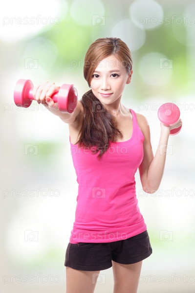 Спортивная девушка с гантелями