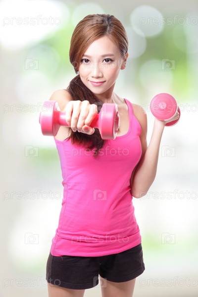 Спортивная девушка с гантелями