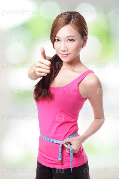 Женщина измеряет объем талии