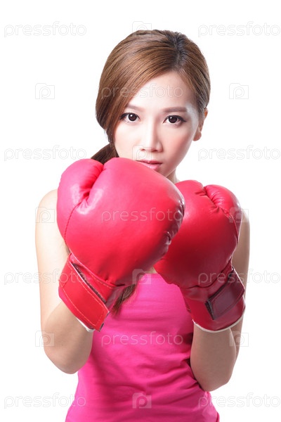 Молодая женщина в боксерских перчатках