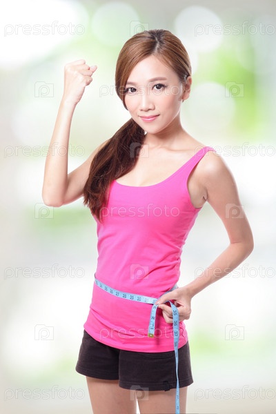 Женщина измеряет объем талии