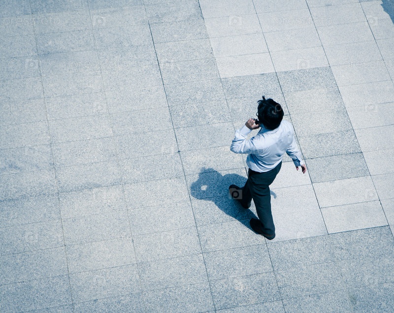 Деловой человек идет с телефоном