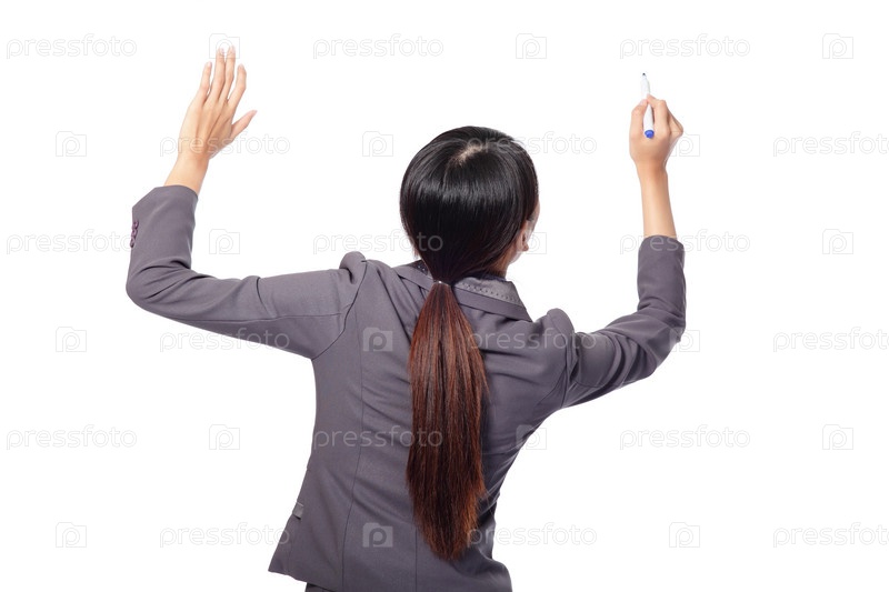 Бизнес-леди что-то пишет на белом фоне