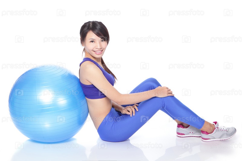 Счастливая женщина с мячом для пилатеса