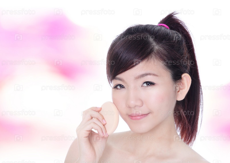 Женщина наносит тональный крем