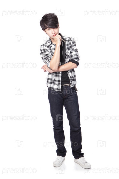 Молодой модный мужчина на белом фоне