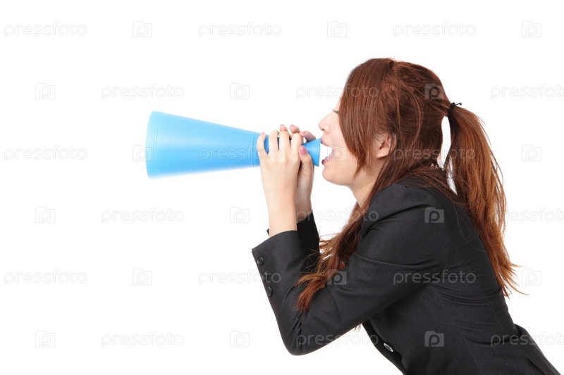 Деловая женщина кричит через мегафон