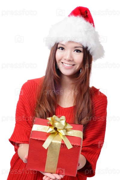 Женщина в колпаке Санты с подарком