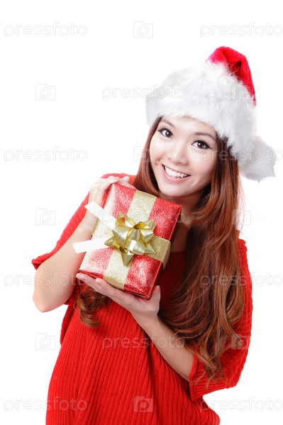 Женщина в колпаке Санты с подарком