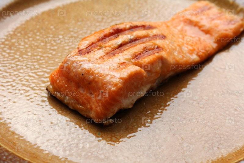 Жареное филе лосося на тарелке
