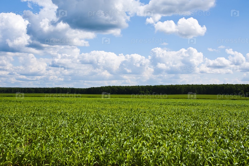 Молодые ростки кукурузного поля