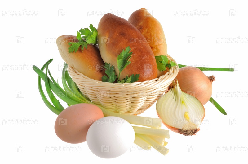Пироги с петрушкой, луком и яйцами в корзинке