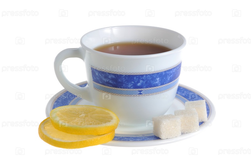 Чай с лимоном и сахаром, изолированный на белом фоне