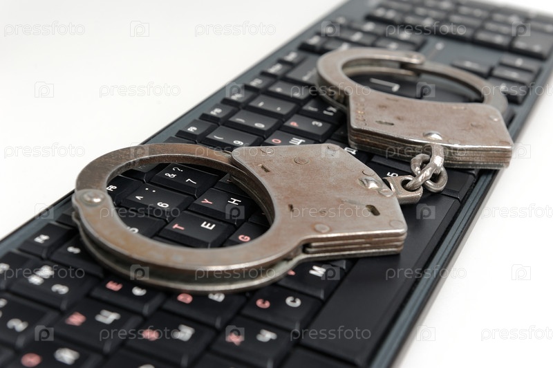 Наручники на клавиатуре на белом фоне