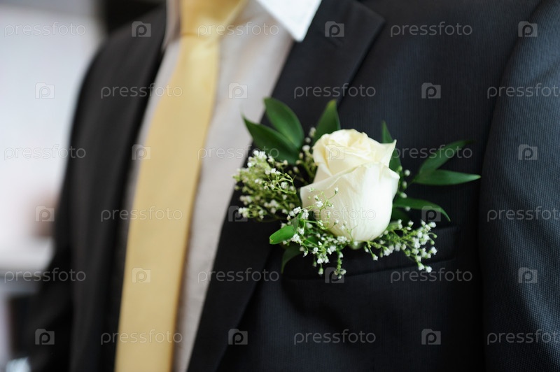 Белая бутоньерка на костюме жениха