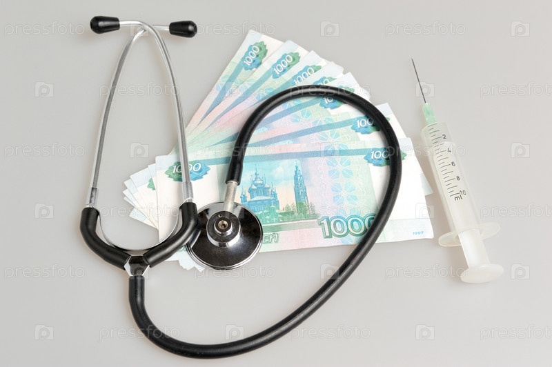 Стетоскоп, шприц и деньги