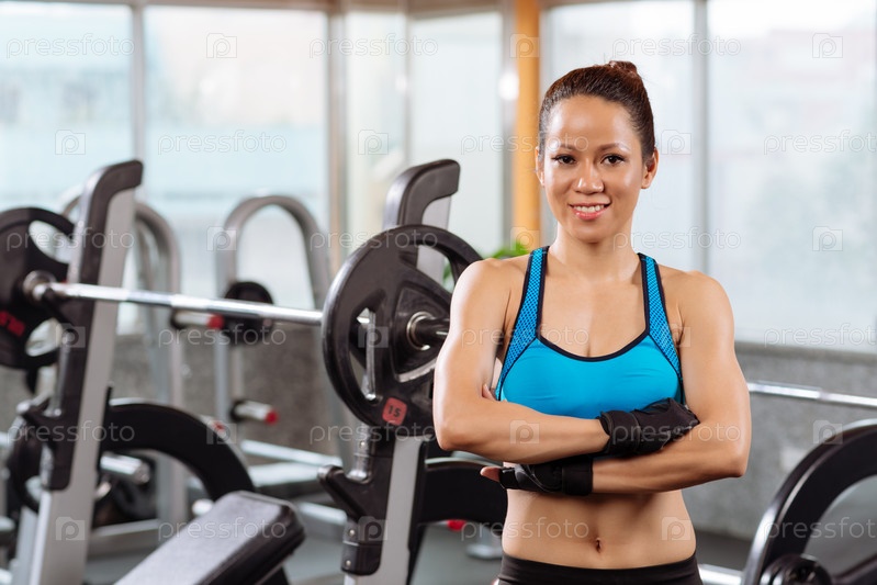 Женщина занимается фитнесом в спортзале