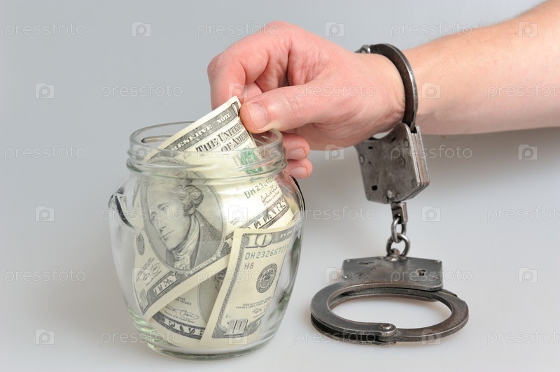 Руки в наручниках достает деньги из банки