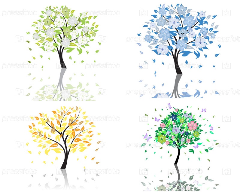 Набор цветущих деревьев