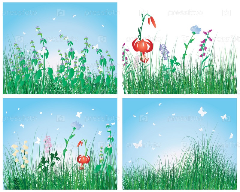Набор фонов с травой и цветами
