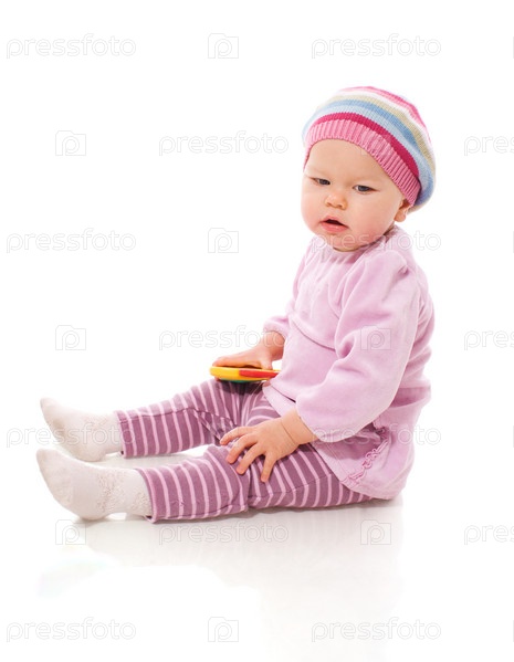 Годовалая девочка, изолирована на белом