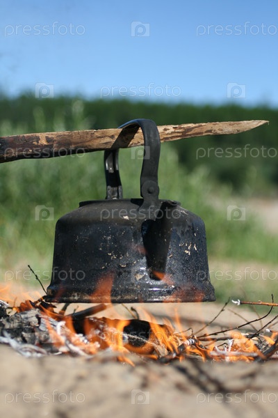 Чайник, висящий над костром
