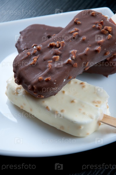 Эскимо с орехами на белой тарелке