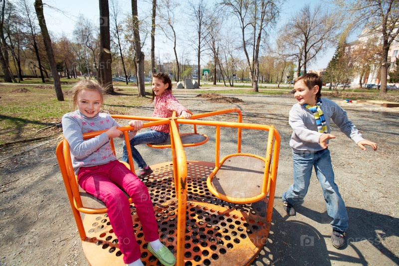 Дети на карусели в парке