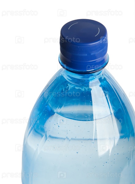 Клюшовый снимок пластиковой бутылки с изолированной водой на белом фоне