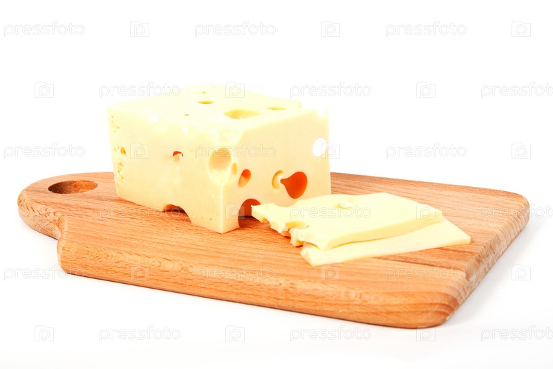 Орех с сыром на деревянной кухонной доске над белым фоном