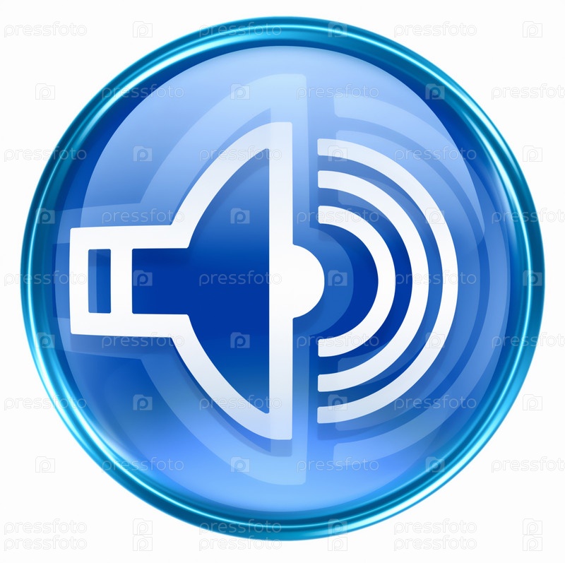 Синяя веб-иконка с изображением динамика на белом фоне