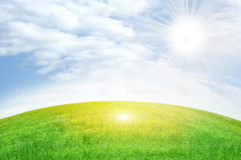 Летнее зеленое поле под голубым небом