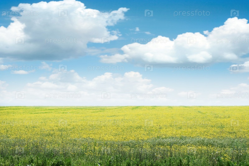 Летнее зеленое поле под голубым небом