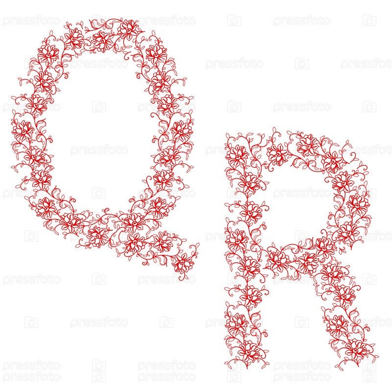 Буквы Q и R из красного цветочного орнамента