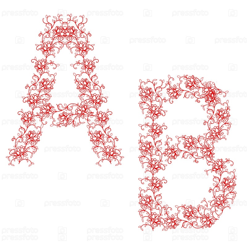 Буквы A и B из красного цветочного орнамента