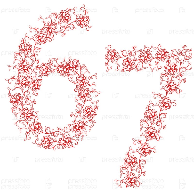 Цифры 6 и 7 из красного цветочного орнамента