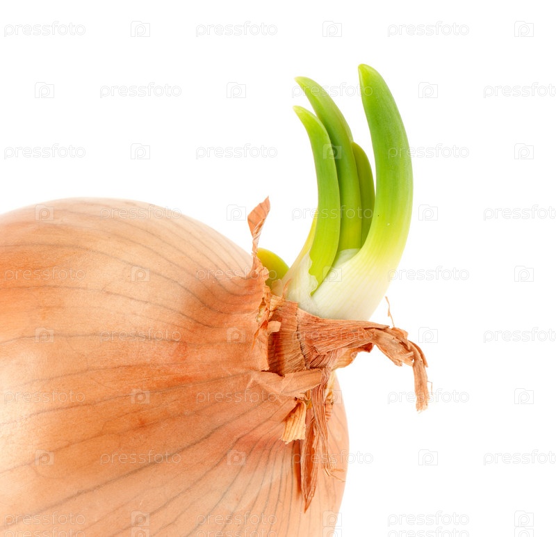 Проросшая луковица на белом фоне