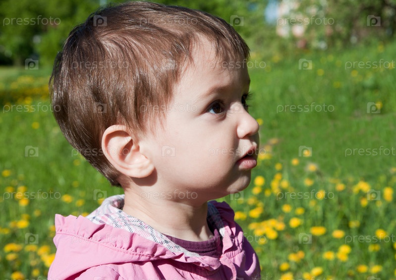Маленькая девочка на зеленой лужайке