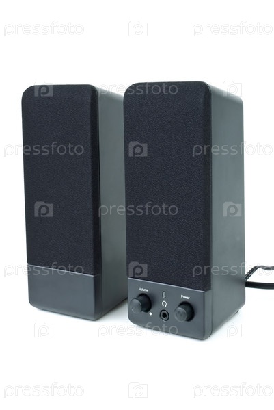 Черные компьютерные колонки на белом фоне
