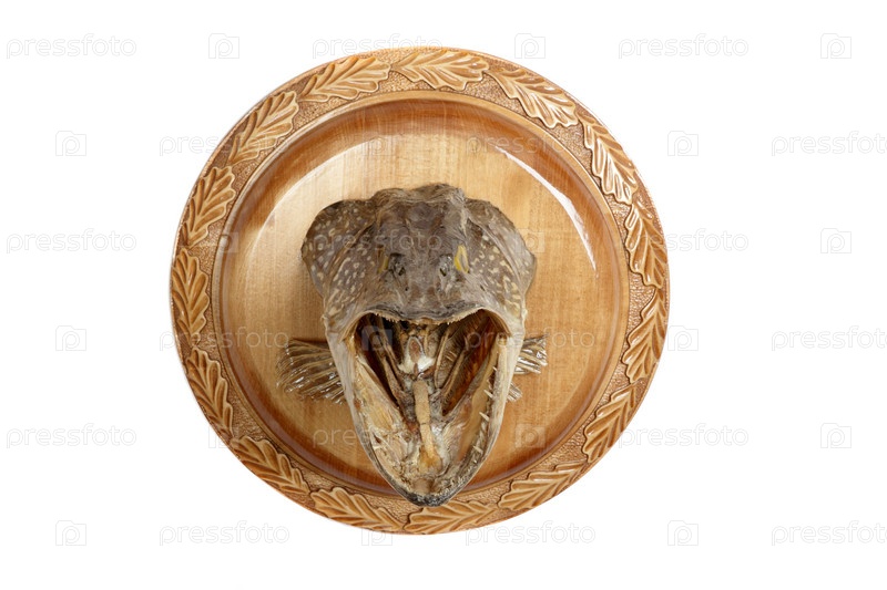 Сушеная голова щуки на деревянной доске