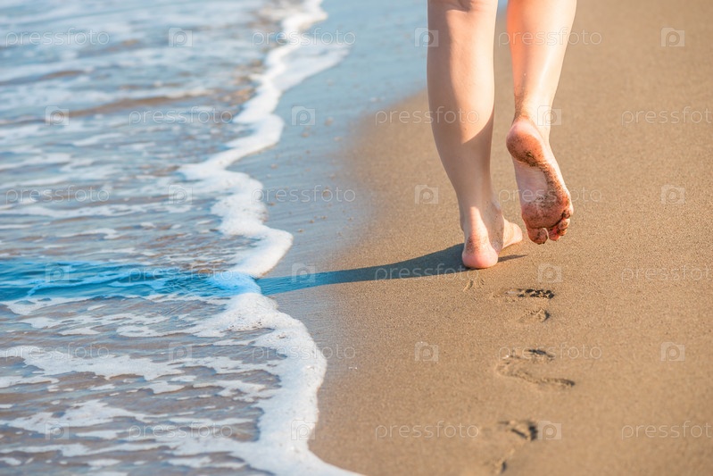 Босая девушка на пляже