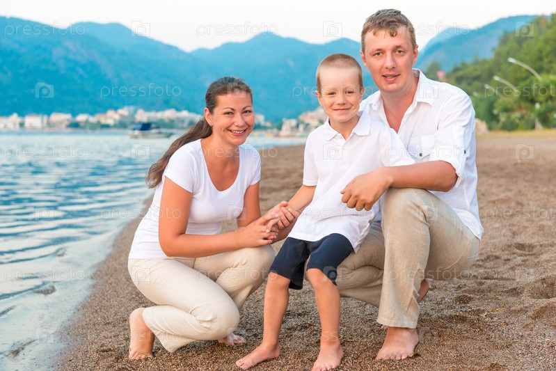 Счастливая семья на море
