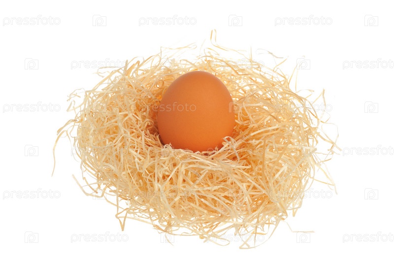 Куриное яйцо в гнезде, изолированное на белом фоне