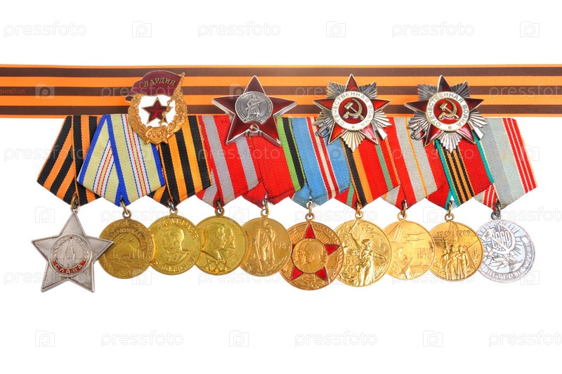 Медали и ордена Великой Отечественной войны с лентой Святого Георгия