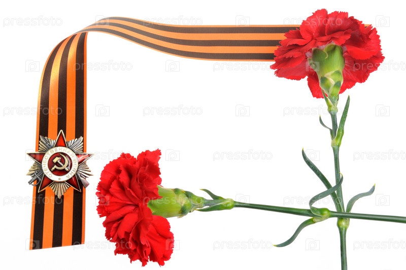 Орден Великой Отечественной войны и красная гвоздика на ленте Святого Георгия