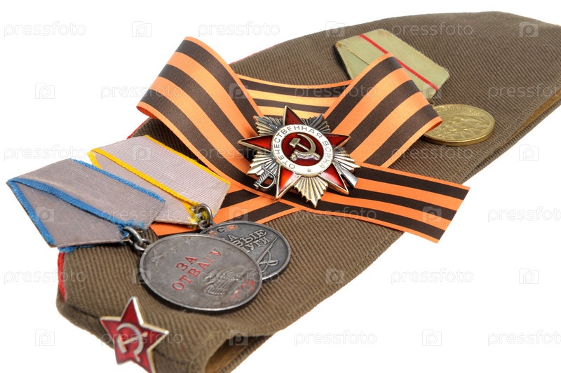 Фуражка, Георгиевская лента, ордена Великой Отечественной войны