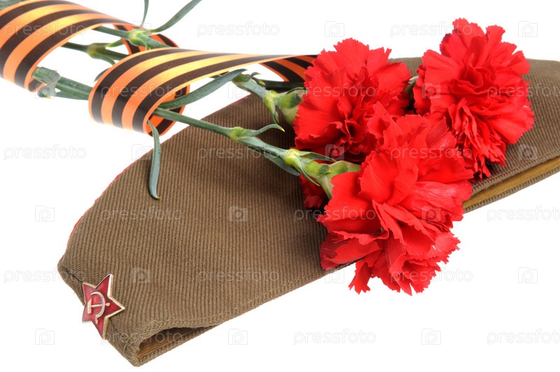 Фуражка и гвоздики с лентой Святого Георгия