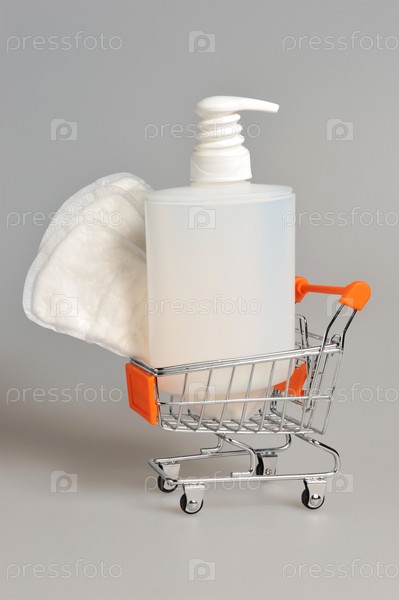 Гель или мыло и прокладки на сером фоне