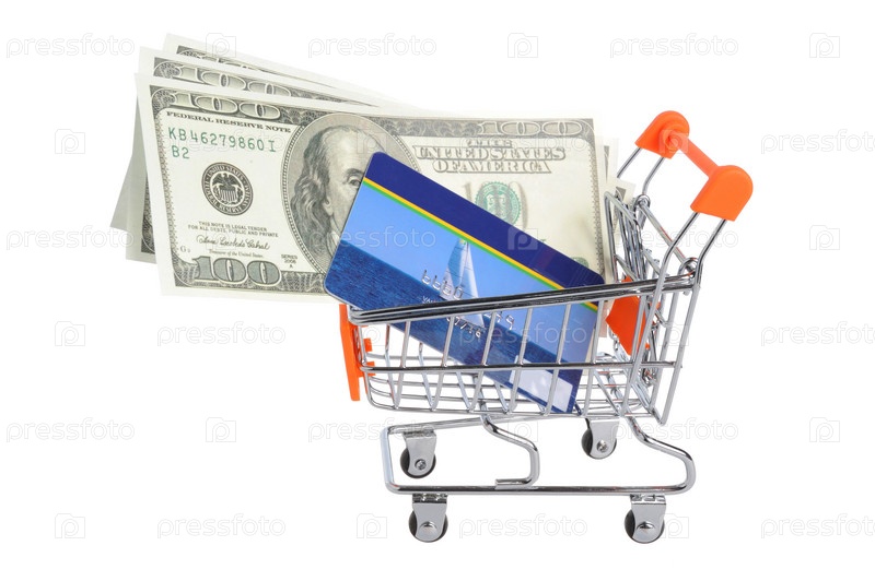 Кредитная карта и деньги в корзине