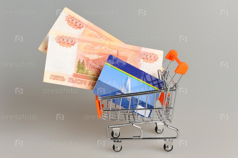 Кредитная карта и деньги в корзине